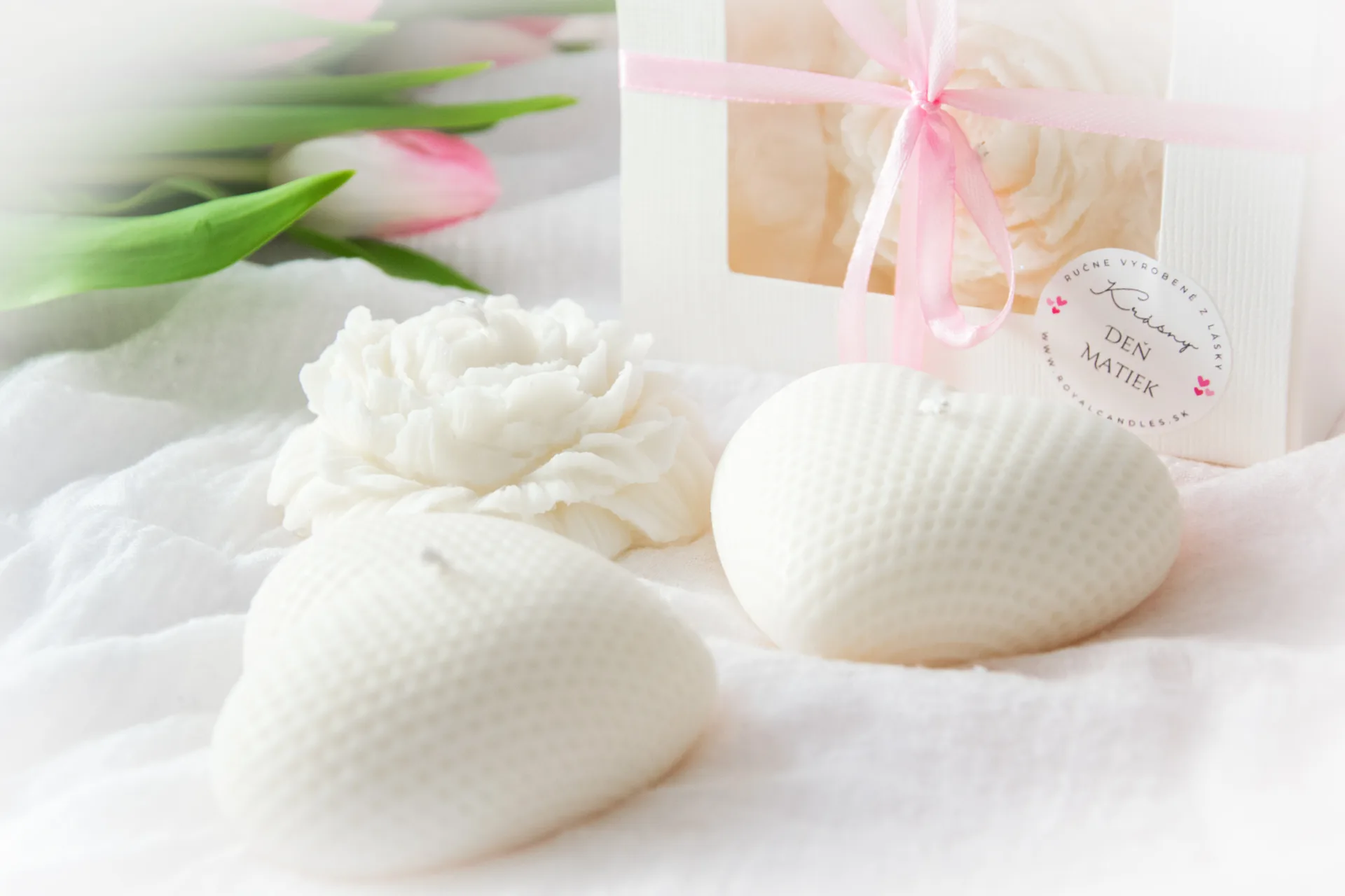 Ktorá sviečka by potešila Vašu maminku viac? Sviečka v tvare jemnej pivónie alebo sviečka v tvare srdiečka? Obe sú odliate s jemnou kvetinovo-ovocnou vôňou. Darčekové