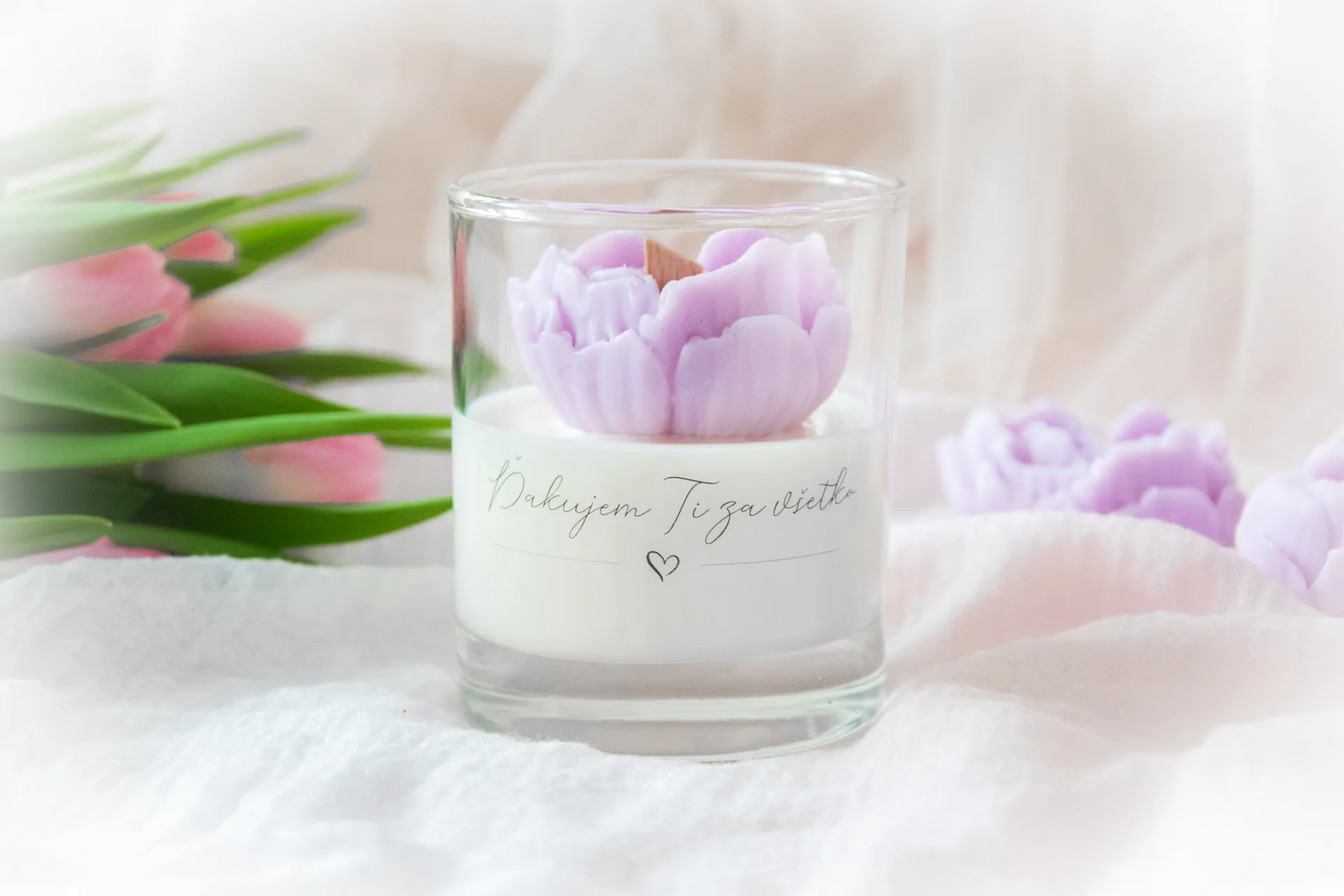 Rozkvitnutá sviečka s kvetinkou – darček, ktorý povie viac než slová