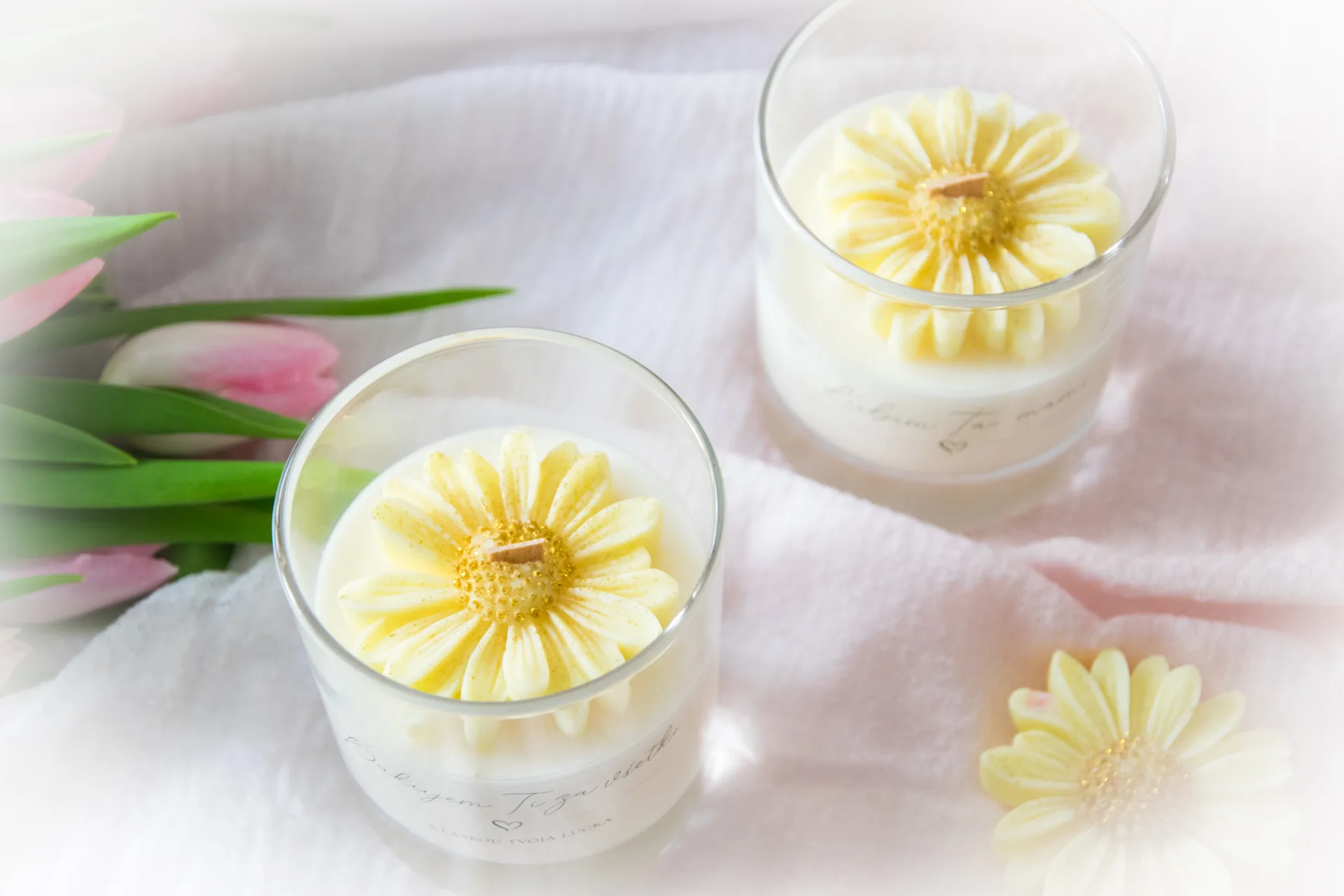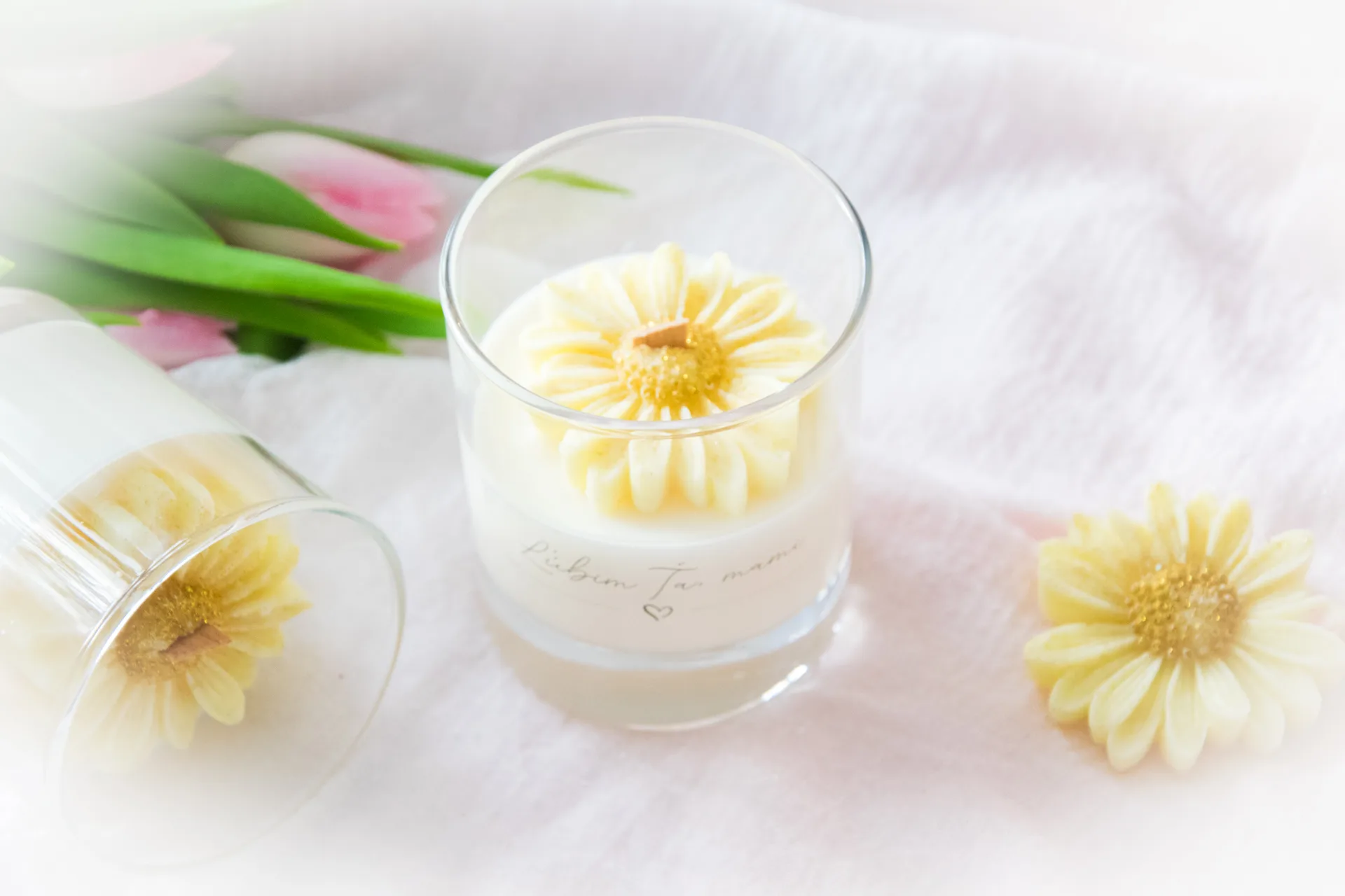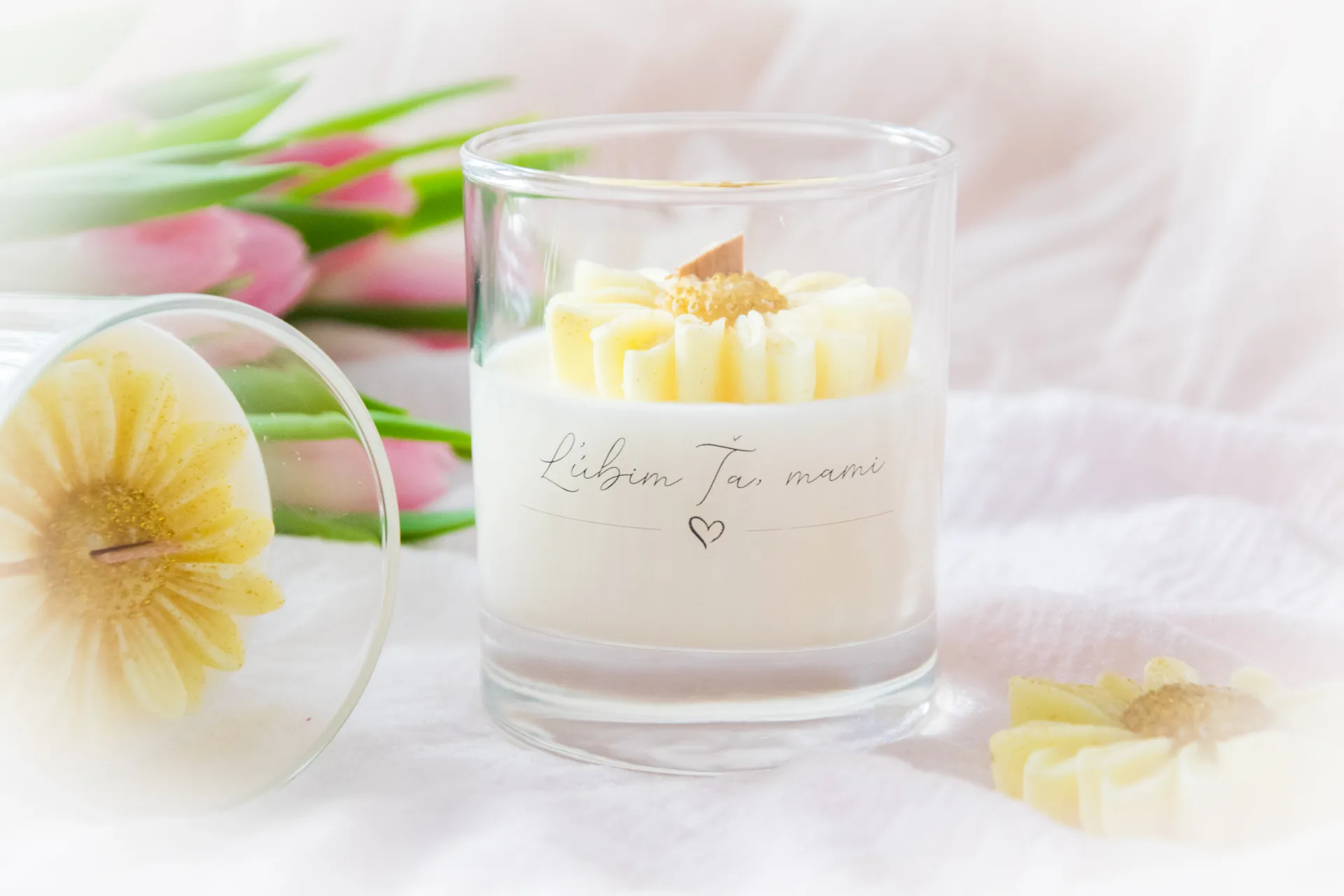 Rozkvitnutá sviečka s margarétkou – darček, ktorý povie viac než slová
