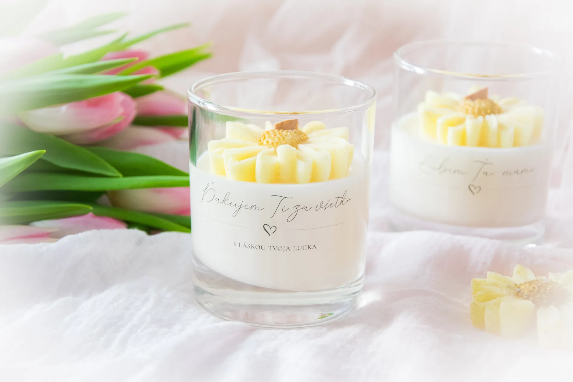 Sú momenty, keď obyčajné „ďakujem“ nestačí...momenty, keď chceš vyjadriť lásku, vďaku a obdiv – jemne, úprimne a zo srdca. Presne pre tie chvíle vznikla táto výnimočná sviečka. Zaujme už na prvý pohľad - nežná žltá margarétka je "zasadená" do srdca sviečky...symbolizuje nehu, lásku a krásu...nie je to len sviečka...nesie v sebe krásny odkaz...emóciu...Každý kus je ručne vyrábaný s dôrazom na detail, aby maminka dostala do rúk niečo skutočne jedinečné. Jemný dizajn dopĺňa nápis vo viacerých variantoch a spolu s možnosťou vlastného venovania sa tak táto nádherná sviečka stáva dokonalým osobným darčekom, ktorý má skutočný význam...
