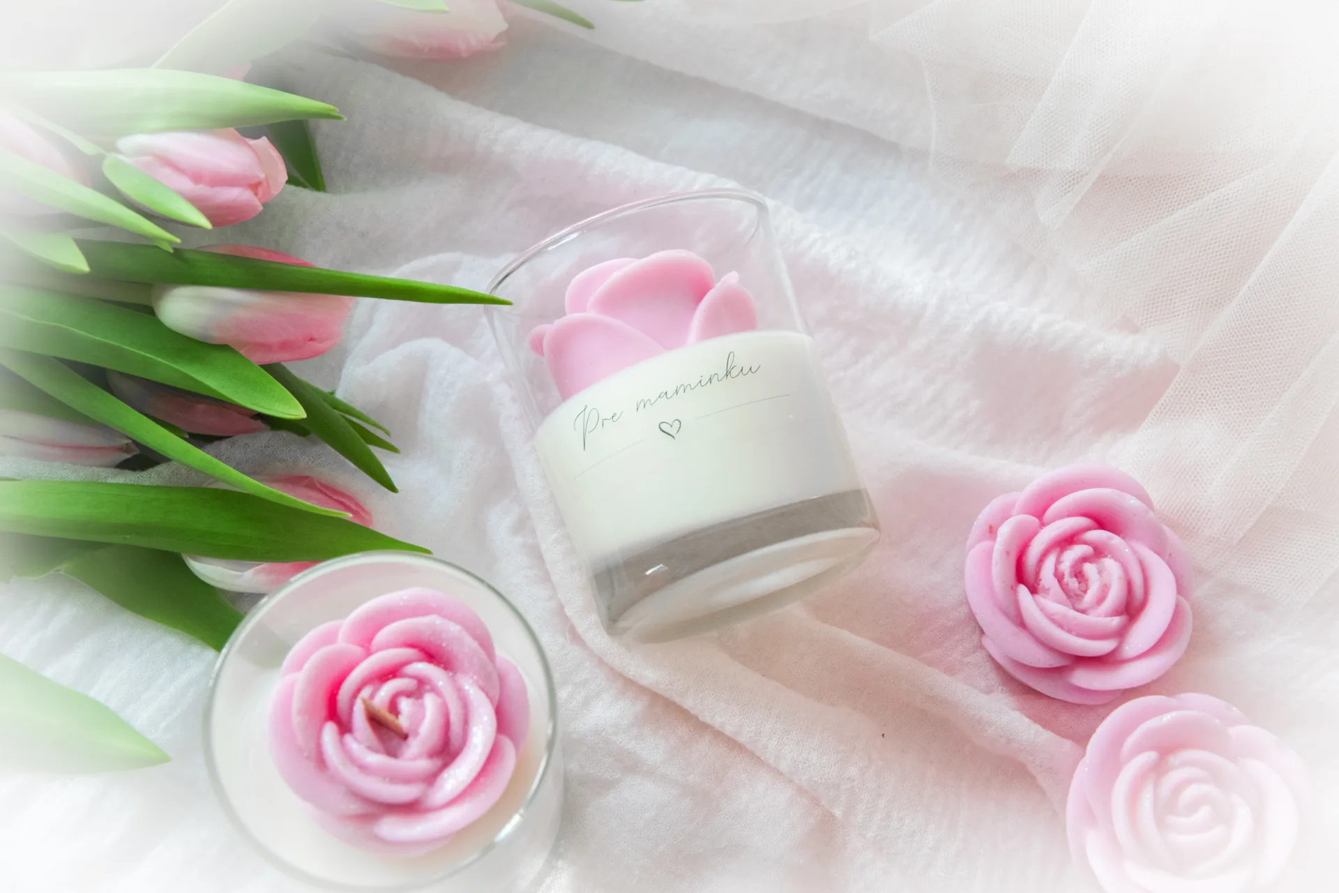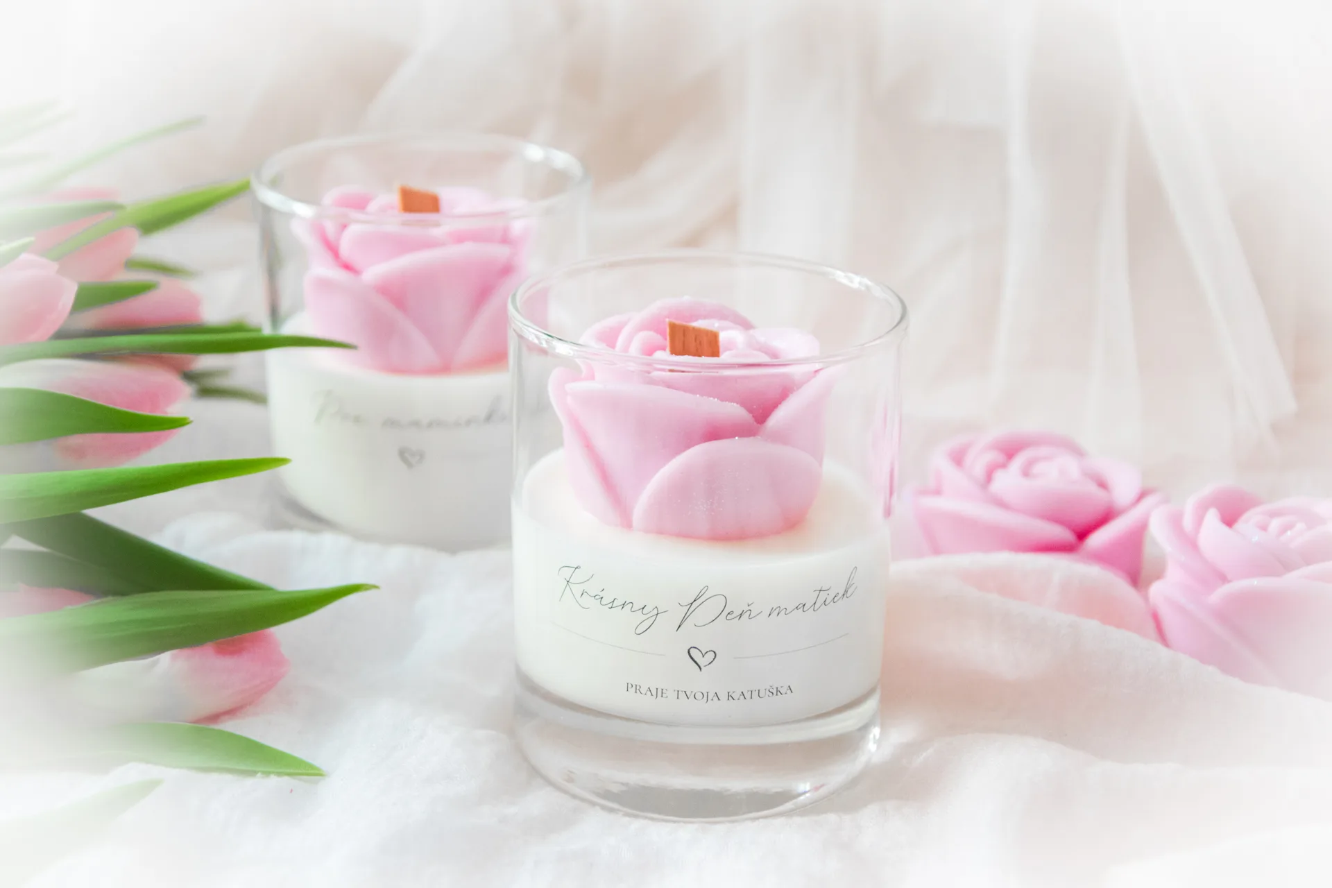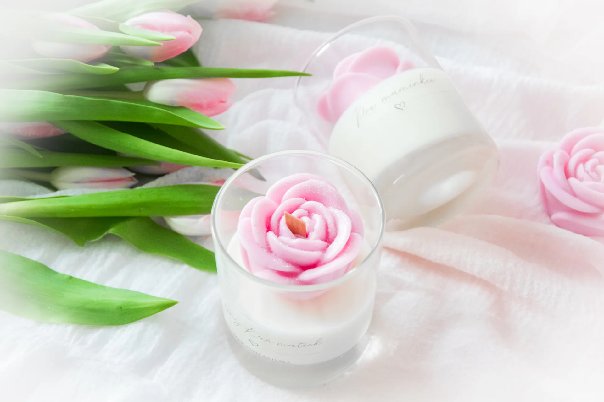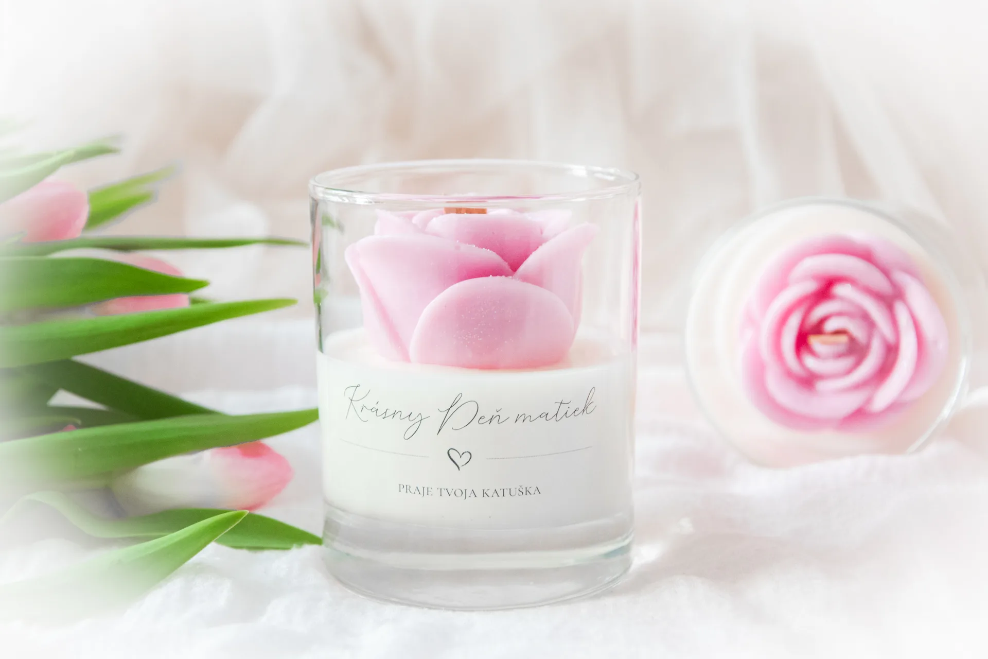 Rozkvitnutá sviečka s ružou – darček, ktorý povie viac než slová