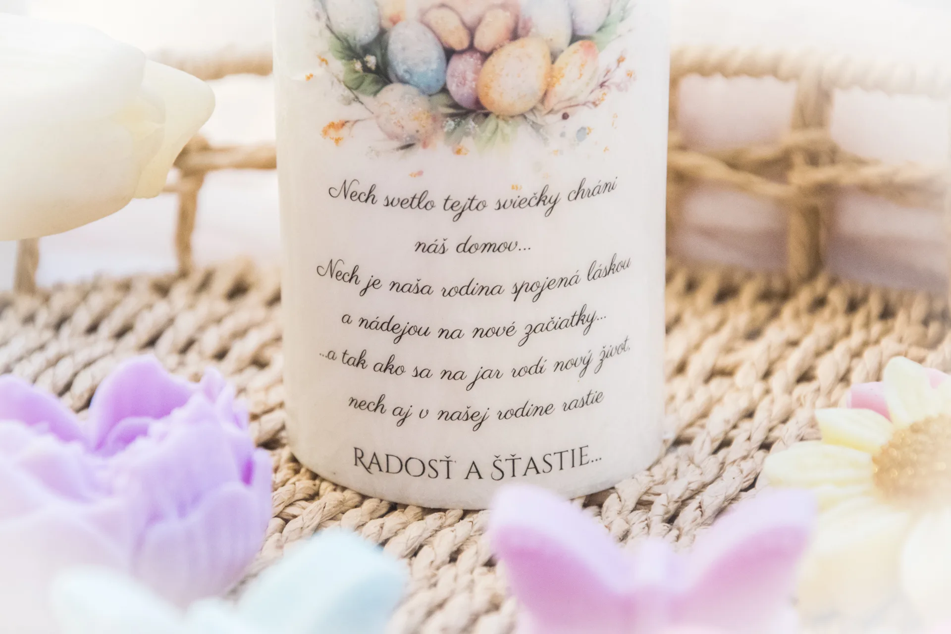 Nech Vás táto sviečka sprevádza pokojom, radosťou a úsmevom počas veľkonočných sviatkov.
