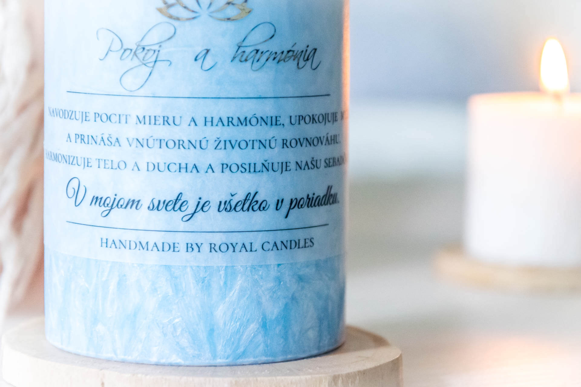 Nadobudnite pocit pokoja, ticha, mierumilovnosti a harmónie upokojením mysle. Kolekcia Relaxačných sviečok bola s láskou vytvorená ako nástroj na očistenie priestoru, k vizualizáciám a meditáciám, či len tak k oddychu a relaxu. Každá farba má svoje špecifické vlastnosti a vibrácie, a tým pôsobí na naše myslenie a pocity. Preto sme vytvorili celú paletu farebných sviečok, ktoré vo svojich jemných a sýtych farbách ukrývajú silnú symboliku. Nechajte sa uniesť ich čistými kryštalickými líniami a jasným svetlom, ktoré zútulní váš priestor kdekoľvek sa rozhodnete. Význam farby: MODRÁ FARBA je farbou neba a mora. Symbolizuje nekonečnosť, navodzuje pocit mieru a harmónie, upokojuje a prináša vnútornú životnú rovnováhu. Je farbou 5. (krčnej) čakry, ktorá je centrom vyjadrovacích schopností, komunikácie a inšpirácie. Vďaka nej vyjadrujeme všetko, čo vnútorne prežívame - smiech, plač, radosť, lásku, šťastie, priania a pocity. V čom nám pomáha: Táto sviečka je vhodná, ak chcete posilniť svoje komunikačné schopnosti a zároveň nadobudnúť pocit ticha a pokoja ukľudnením svojej mysle. Vytvára most medzi cítením a myslením. Dodáva nám odvahu vyjadriť svoje pocity a pomáha nám navodiť vnútorný pokoj. Navyše očisťuje organizmus, harmonizuje telo a ducha a posilňuje našu sebadôveru.Obľubujú ju ľudia pokojnej povahy. Vyjadruje ju sloveso: „HOVORÍM“. Nechajte sa uniesť jasným svetlom tejto ručne odlievanej sviečky zo 100%-ného kryštalického palmového vosku, ktorý je čisto prírodným rastlinným produktom. Jeho jedinečnou vlastnosťou je jeho kryštalizácia, ktorá počas procesu tuhnutia vytvára na povrchu sviečky prekrásny efekt ľadových kvetov, ktoré sa nikdy neopakujú, takže každá sviečka je unikátna. Vďaka svojmu čisto prírodnému zloženiu a bavlnenému knôtu počas horenia neprodukuje žiadne škodlivé látky ani dym, takže je vhodná aj pre citlivejších ľudí, alergikov a malé deti. Jej jasné Svetlo zútulní akýkoľvek priestor a navodí príjemnú atmosféru tam, kde to najviac potrebujete.Symbolika sviečky je vytlačená na pauzovacom papieri, ktorý pred zapálením jednoducho zložíte zo sviečky a môžete si tak naplno užívať krásu a čistotu jej horenia.Rozmer sviečky: 7*11 cmHmotnosť: 400 gDĺžka horenia: cca 70 hodín