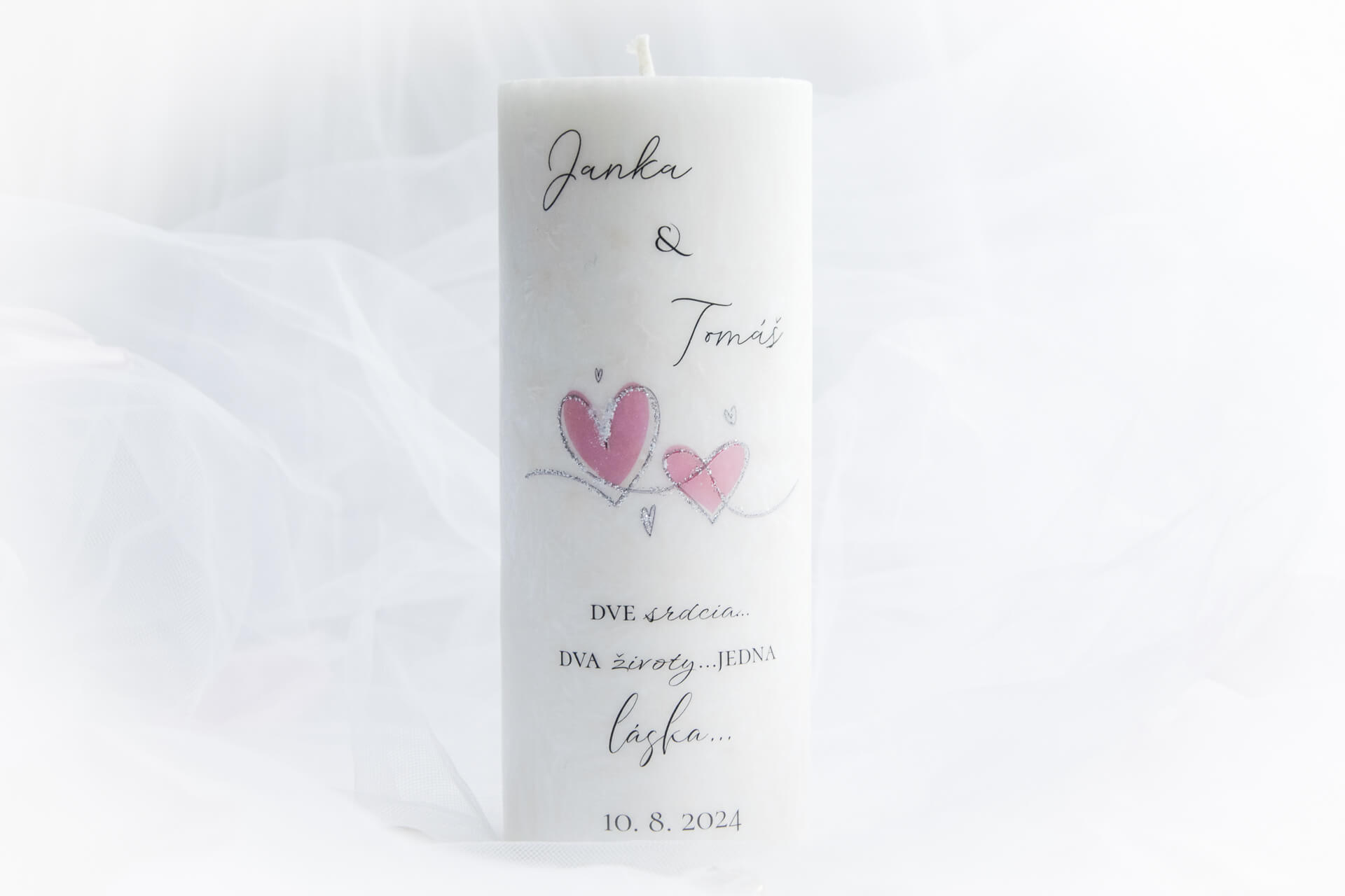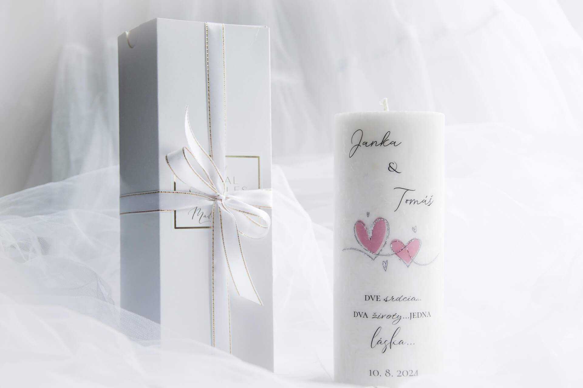 Svadba, to nie je len ten jeden deň...je to záväzok na celý život...okamih, ktorý trvá síce krátko, no v našich srdciach ostáva navždy...a preto sme s tou najväčšou láskou vytvorili túto jedinečnú exkluzívnu kolekciu svadobných sviečok - ako vzácnu spomienku na Veľký deň v živote dvoch ľudí, ktorí spečatili svoju lásku. Ak teda hľadáte výnimočný a osobný svadobný dar, ktorý by novomanželom pripomínal ich VEĽKÝ DEŇ, tak ste ho práve našli...a nielen taký hocijaký...lebo toto nie je obyčajná sviečka...je to svetlo...spomienka...zhmotnená emócia...pri pohľade na ňu, či pri jej pálení, si manželia spomenú na Vás...na svoju rodinu a blízkych, ktorí s nimi boli...a na všetky tie prekrásne chvíle, ktoré počas svadobného dňa prežili...je to dar, ktorý poteší ich spojené srdcia a vďaka ktorému na svoj svadobný deň nikdy nezabudnú...